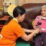 圖4:詹麗珠執行長陪伴周阿嬤,開心進行柚子疊疊樂趣味遊戲。