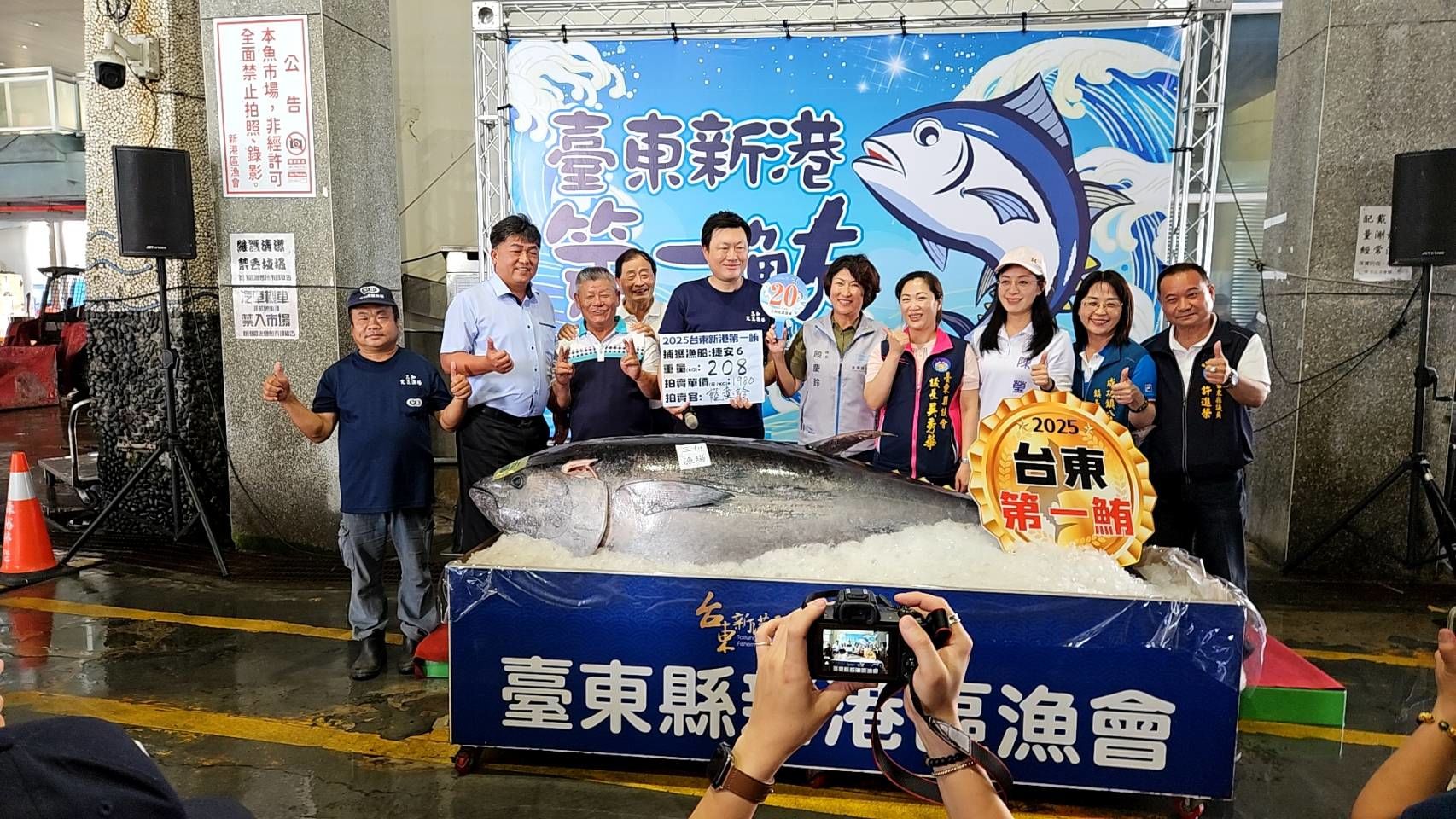 臺東縣政府為振興在地漁業,今年特別補助新港區漁會,首度推出捕獲臺東第一尾黑鮪魚獎金20萬元活動。縣長饒慶鈴今(5)日前往新港漁市場主持黑鮪魚拍賣,並頒發20萬獎金給5月2日釣獲臺東第一尾黑鮪魚的新港籍漁船「捷安6號」船長鄭國靜,也宣告臺東黑鮪魚季正式展開,希望今年縣府與漁會首次推出的獎勵活動,能增加漁民出海捕捉黑鮪魚動力,更期望透過這次拍賣活動,能為臺東今年第一尾黑鮪拍出高價。