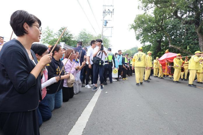 下午3時南投縣遶境正式啟程時,許縣長與地方各界長跪路旁迎駕,並獲得媽祖鑾駕貼近加持,許縣長激動指出,南投縣在媽祖婆庇佑下,一定會非常平順,她將專程赴拱天宮獻敬道謝,並期待白沙屯媽祖年年都來南投遶境祈福。