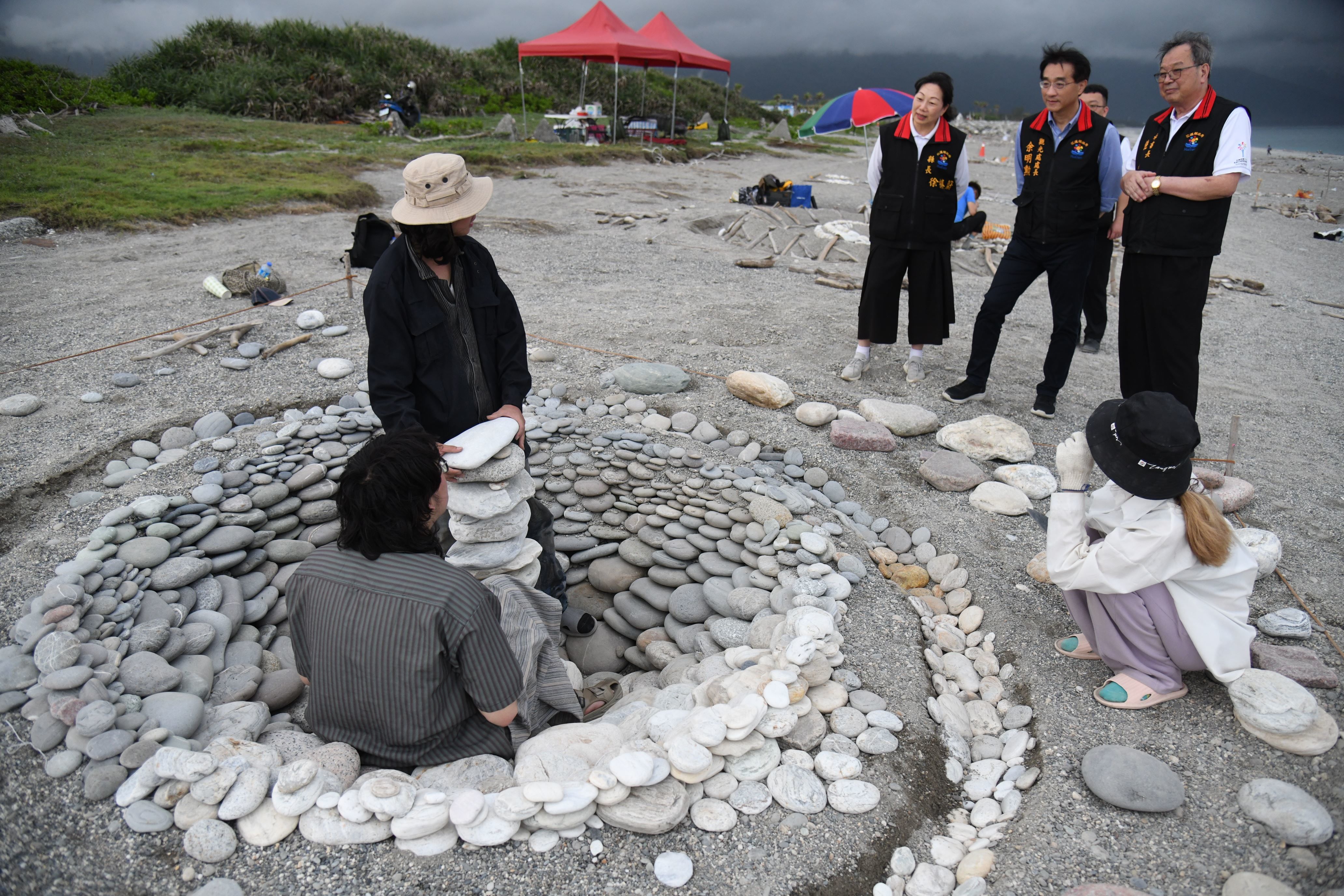花蓮「2025曼波新城太平洋國際疊石藝術季」熱情展開中!花蓮縣長徐榛蔚日前親赴七星潭海岸風景區,逐一欣賞本次疊石藝術作品,並與創作者面對面交流,聆聽創作靈感與心路歷程。參賽藝術家們將會在現場製作到5月15日,並於5月17日正式開展,邀請全國民眾共襄盛舉。