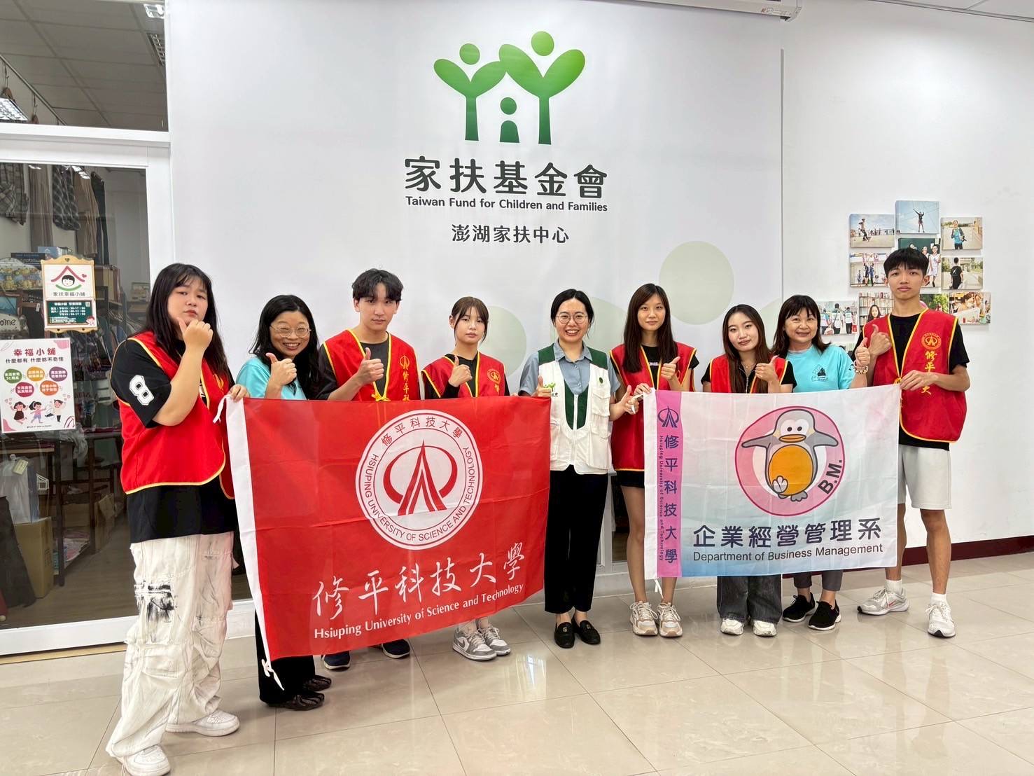 修平科技大學企業經營管理系持續落實社會責任與人文關懷精神,林玉華系主任與黃玉菁老師於5月20日帶領八位學生跨海前往澎湖,展開為期數日的公益服務活動,透過捐款、捐物與在地交流,以實際行動傳遞修平的溫暖與關懷。