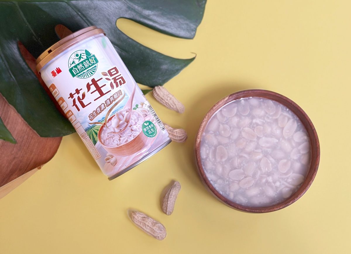 泰山身為「甜罐點心專家」,今年全新推出《自然就好》系列,主打原型食材、簡單成分與自然風味,首發作品便是經典溫潤的《自然就好系列花生湯》,成份僅以水、花生及蔗糖所組成,無添加食品添加物與防腐劑,以細火慢煮工法保留花生最純粹的香氣、綿密鬆軟的顆粒與微甜湯底交織出順口不膩的清爽口感。新品6/6起將於全聯及各大量販通路上架販售,原價40元,全聯6/6~6/19兩罐特價56元,品味自然好滋味正是時候!