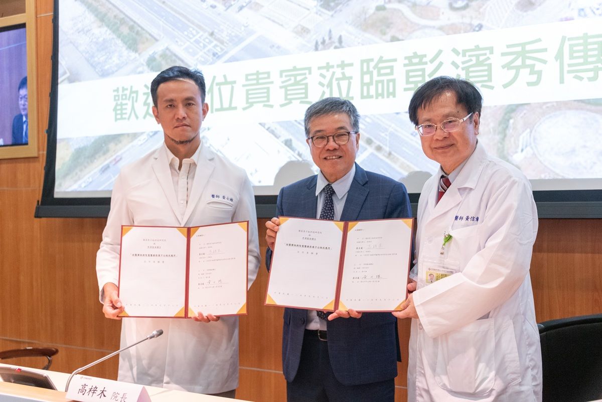 出席簽署儀式的秀傳醫療體系代表包括黃士維總院長、黃信彰院長、洪光威副院長及黃文盛教授;國原院則由高梓木院長、王正忠副院長、綜企處曾慶沛副處長、同位素所李振弘所長及輻防所袁明程所長共同參與。