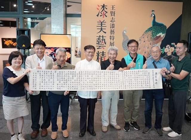 臺中市政府文化局副局長曾能汀表示,「漆美藝精」是年度深具藝術亮點的重要展覽,也可以說是返鄉展,王賢志老師1952年出生於臺中縣神岡鄉,曾獲得國家工藝獎二等與三等獎、高雄美展高雄獎等諸多獎項,為傳統藝術「漆工藝-蒔繪」技藝保存者,至今已巡迴臺中四個藝文中心展出,完成山海屯城藝術拼圖,並與其子王峻偉皆致力於漆藝傳統藝術保存與推廣。王賢志老師擅長漆器花草彩繪,作品典雅華麗,創作題材多取自臺灣常見的花鳥、民俗意象或吉慶圖騰,傳達對土地人文的深厚情感;王峻偉為美研漆藝工坊第三代傳人,專注於漆畫與生活漆器的創作與推廣,其作品融合傳統技藝與當代美學,展現兼容並蓄、創新不輟的風貌,將呈現父子傳承意義的精采展出。