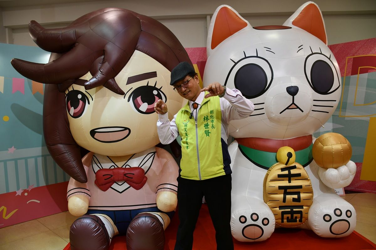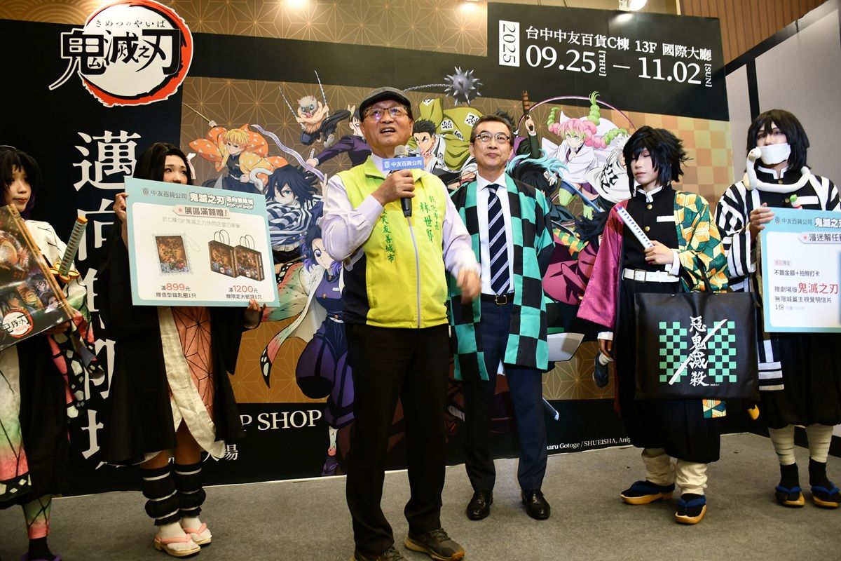 彰化市長林世賢25日上午專程趕赴台中中友百貨公司,偕同該公司台中店的店長陳俊華,一起為該店《鬼滅之刃》與《膽大黨》雙重知名動畫快閃店開幕造勢,同時雙雙為即將於10月18日,在彰化市旭光西路中友百貨彰化店基地旁的成功公園,盛大舉辦的「中友獻愛!百貨生活祭in彰化…」,並有《鬼滅之刃》Coser現身!