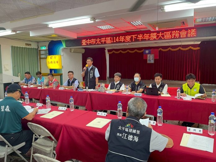太平區公所在10月2日(星期四)上午9時30分於3樓大禮堂召開本年度下半年擴大區務會議,由區長陳柏宏主持,會中就區內之公共建設、道路、交通、排水系統改善、公園、綠地及路燈等公用相關案件逐案討論,充分溝通協調,積極解決各類民生大小事情,落實基層政策的推行。