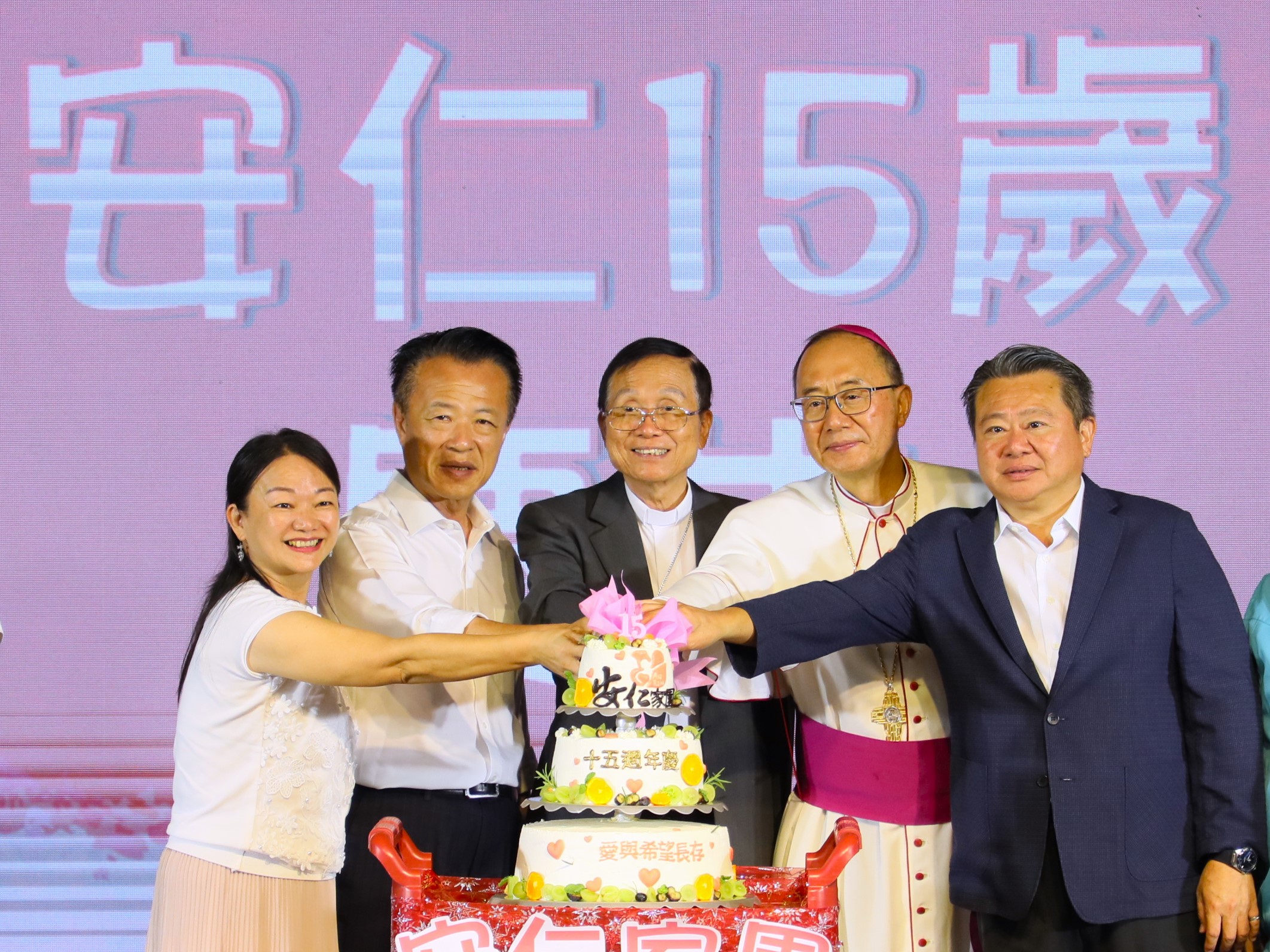 活動尾聲,天主教嘉義教區主教浦英雄與安仁家園院長謝孟潔邀請現場來賓登台,與孩子們一同合唱「有你就幸福」,同時,台下的來賓點亮象徵希望之光的LED蠟燭,場面溫馨,令人動容。