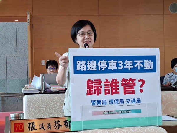 張芬郁表示,盧秀燕市長對於「無牌車輛」強調要嚴格處理、加強拖吊,甚至呼籲中央修法,但「有牌卻長期丟置」的車輛無人管理,恐造成社區糾紛與市容髒亂才是大問題,交通局專案報告卻選擇視而不見。