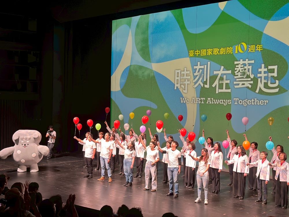 臺中國家歌劇院於2016年開幕,今天在中劇院舉辦10週年展演活動起跑茶會,邀請藝術界、產業界等數百位「關係人」與會。藝術總監邱瑗以永續場館、人才培育、多元展演3個面向,分享營運成果及展望。可愛吉祥物「壺裡狗」也首度亮相,在10週年主題曲《揚帆啟航》合唱聲中圓滿結束。
