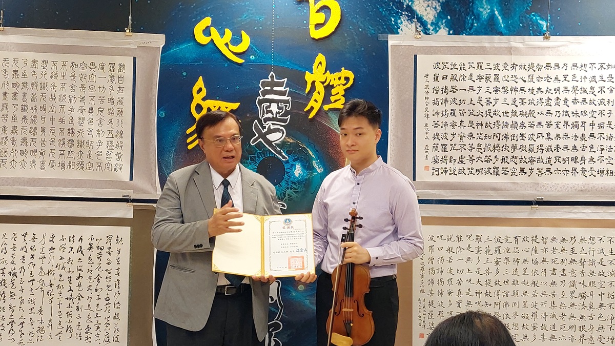 此次展覽作品涵蓋楷、行、草、篆等多種書體,並有圓形構圖等特色,展現書法藝術的多樣風貌與無限創意。10時30分舉行開幕茶會,邀請留美新一代音樂家陳為霖以小提琴演奏揭幕!現場來賓在喜歡的作品貼上紙條,展畢即可獲贈心經,引起熱烈回響!
