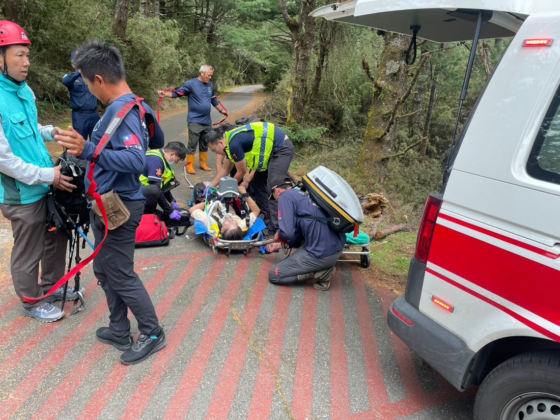 南投縣政府消防局第三大隊接獲通報後,隨即啟動山域救援機制,玉山分隊警義消共10名及救護車和勤務車出勤,同時玉山國家公園管理處塔塔加管理站技正、技士和助理保育巡查員3人,以及保七總隊第六大隊玉山分隊塔塔加小隊2名警員就近支援,共計地面部隊15人前往馳援。