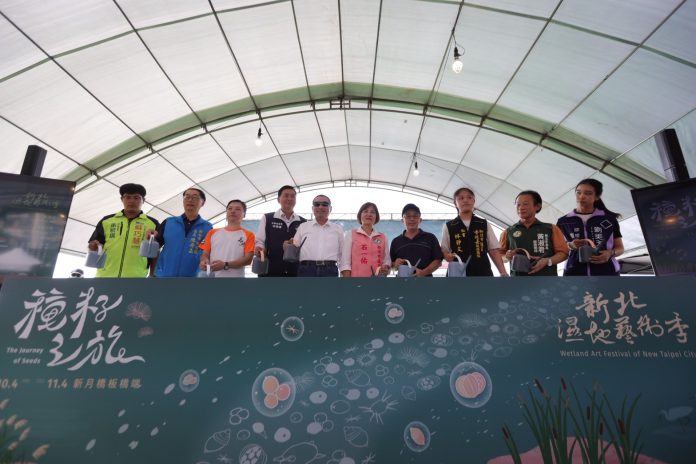 新北市政府高灘地工程管理處主辦「2025新北濕地藝術季-種籽之旅」於今(4)日在板橋新月橋下新海二期人工濕地正式揭幕。市長侯友宜親臨現場發放月餅與大家共度中秋連假,並表達對藝術與環境永續的支持,和民眾一同啟動「種籽之旅」,為活動揭開序幕。濕地藝術季展期自即日起至11月4日。誠摯邀請市民朋友走入濕地,親身感受藝術與自然的美妙對話。