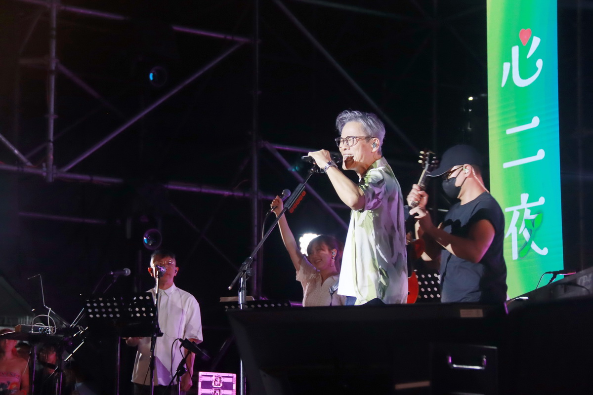 南投世界茶業博覽會「一心二夜」演唱會4日晚上沸騰登場,逾六萬人次擠爆中興新村大操場,鄭怡、李建復等民歌唱將接力傳唱,71歲的羅大佑老當益壯又唱又跳,全場嗨翻,茶博會第一天經典演唱會掀起熱浪轟動全場。