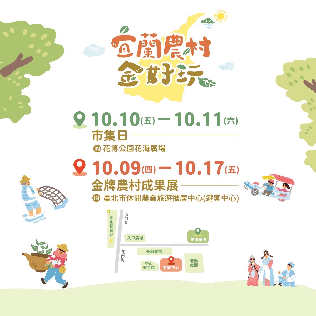 今年是縣府首度帶領農村社區走出宜蘭,於縣外策展,並與農業部農村水保署共同合作,期望讓更多人認識宜蘭農村的驕傲與力量。宜蘭縣政府表示,今年的「宜蘭農村金好玩」將透過兩大主題活動與民眾見面: