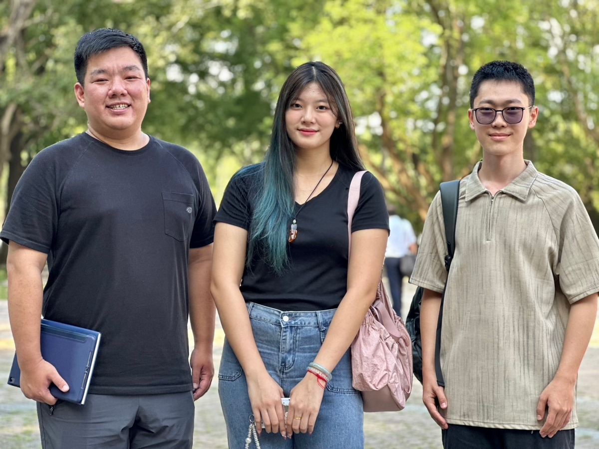 暨大特輔班隨班服務人員厲志光(左起)、張同學與尹同學,於暨大美麗的校園合影。(暨大提供)