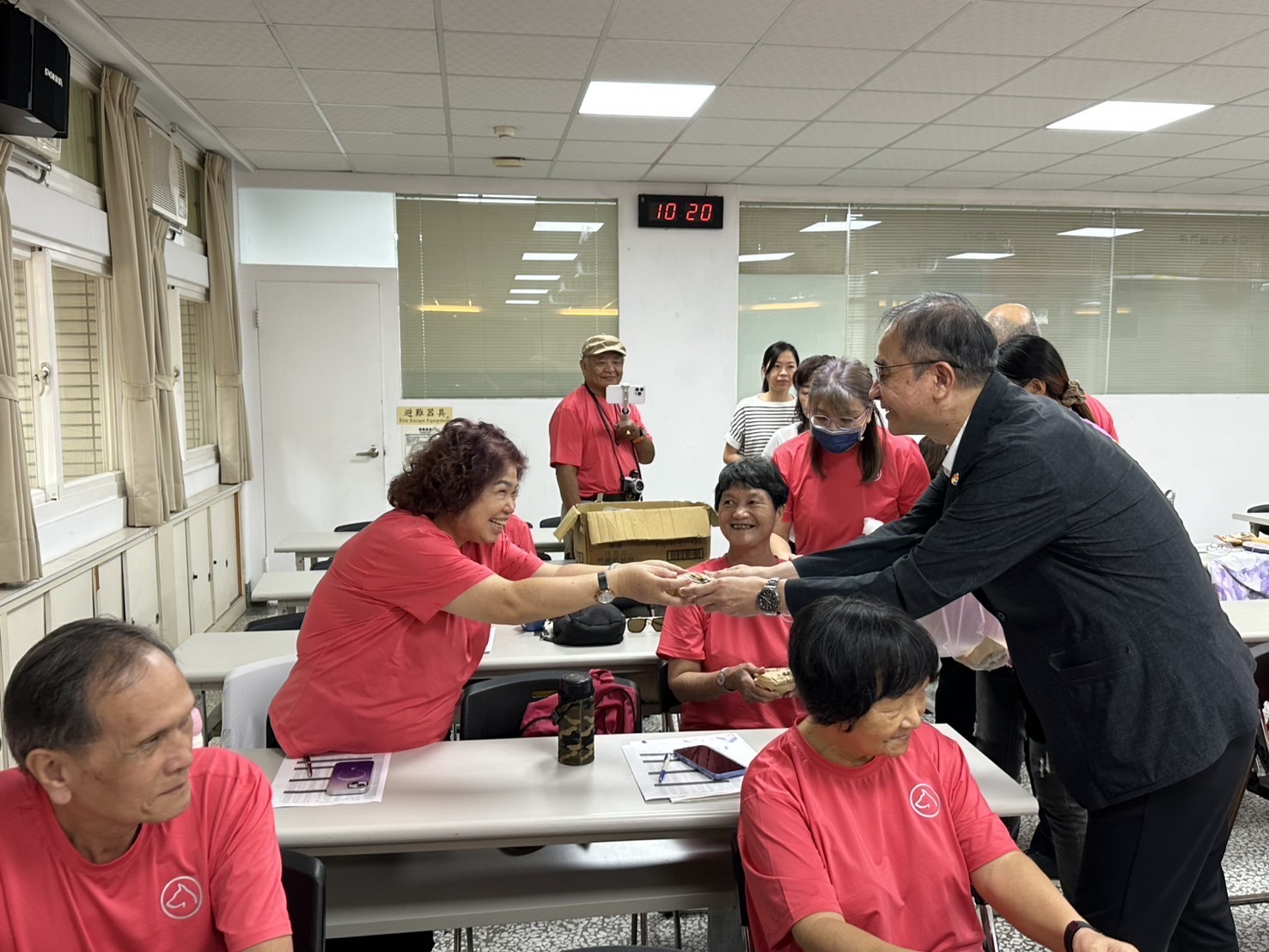 嶺東科大校長陳仁龍致詞時肯定學員積極學習的精神,並強調學校將持續整合校內外資源,提供銀髮族更多元的學習平台。他也親自向學員贈送特色美食,象徵嶺東「以心傳心」的教育溫度。