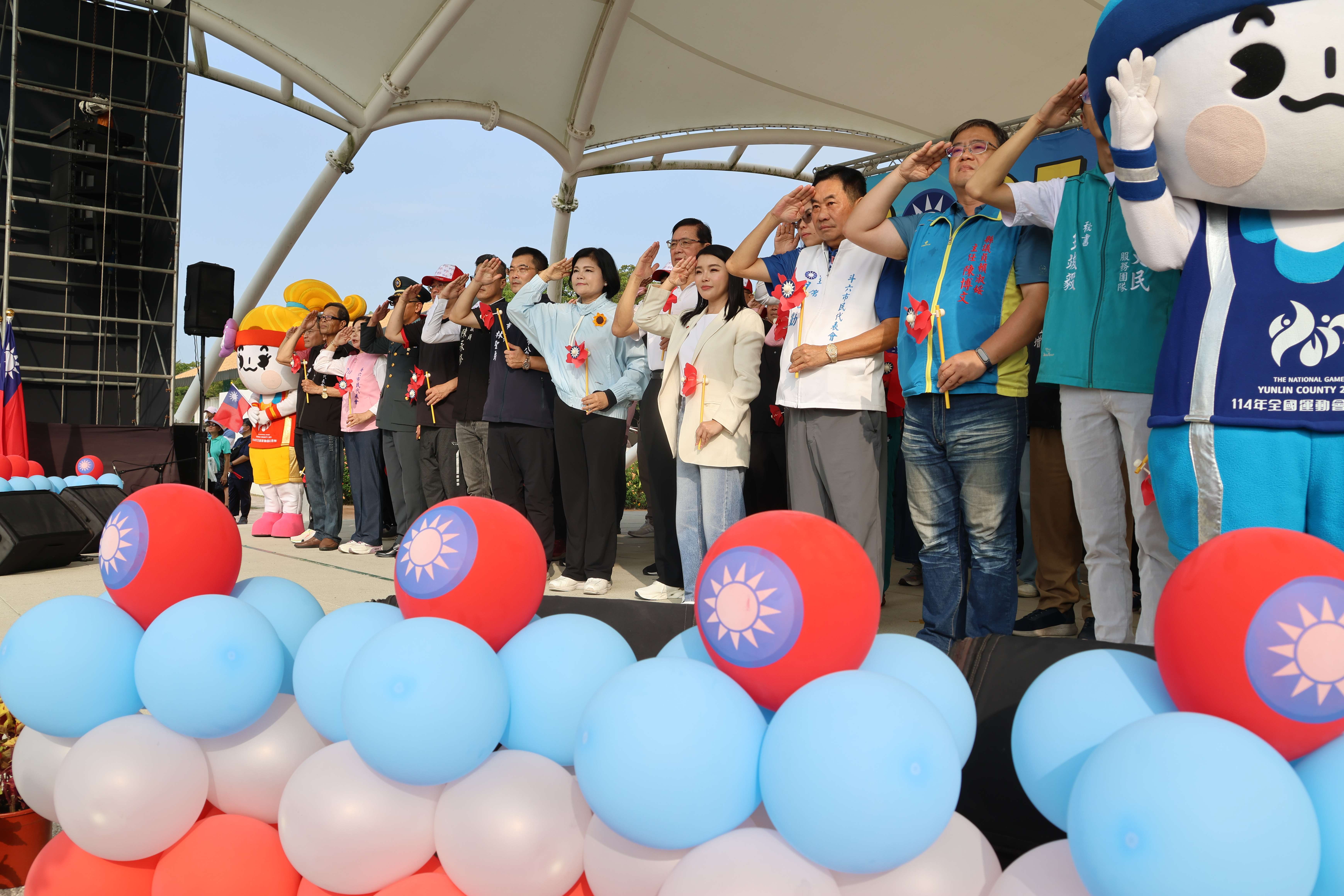 光輝雙十國慶,雲林縣政府與斗六市公所今(10/10)一早於斗六膨鼠公園舉辦「2025雙十國慶齊步走」升旗暨健行活動,縣長張麗善率縣府團隊、斗六市長林聖爵率公所團隊及立委張嘉郡、雲林後備指揮部陳維忠上校、議員陳永修、陳芳盈等諸多嘉賓出席與民眾一起大聲唱出國歌,敬禮看著國旗升起,更透過健走的方式為國家慶生,中華民國生日快樂!
