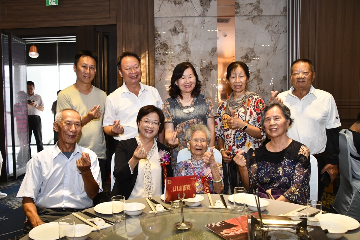 情牽今生,百歲輝煌!為慶祝即將到來的重陽敬老節,彰化縣政府今(12)日上午在花壇全國麗園餐廳舉辦「114年度高齡同學會活動」,縣長王惠美到場與長輩同歡,現場邀請56位百歲人瑞及42對白金婚夫妻慶祝重陽佳節,藉此表達縣府對長輩敬重與關懷美意。活動由知名藝人戴梅君演唱揭開序幕,王縣長為長者獻上祝賀詞「添福添壽添富貴,身體健康無煩惱」象徵吉祥長壽。王縣長表示,「家有一老,如有一寶」,希望長輩都把自己的身體顧好,並鼓勵子女愛要及時,行孝也要及時,用行動關心及陪伴長輩,讓他們都能健康安享晚年。