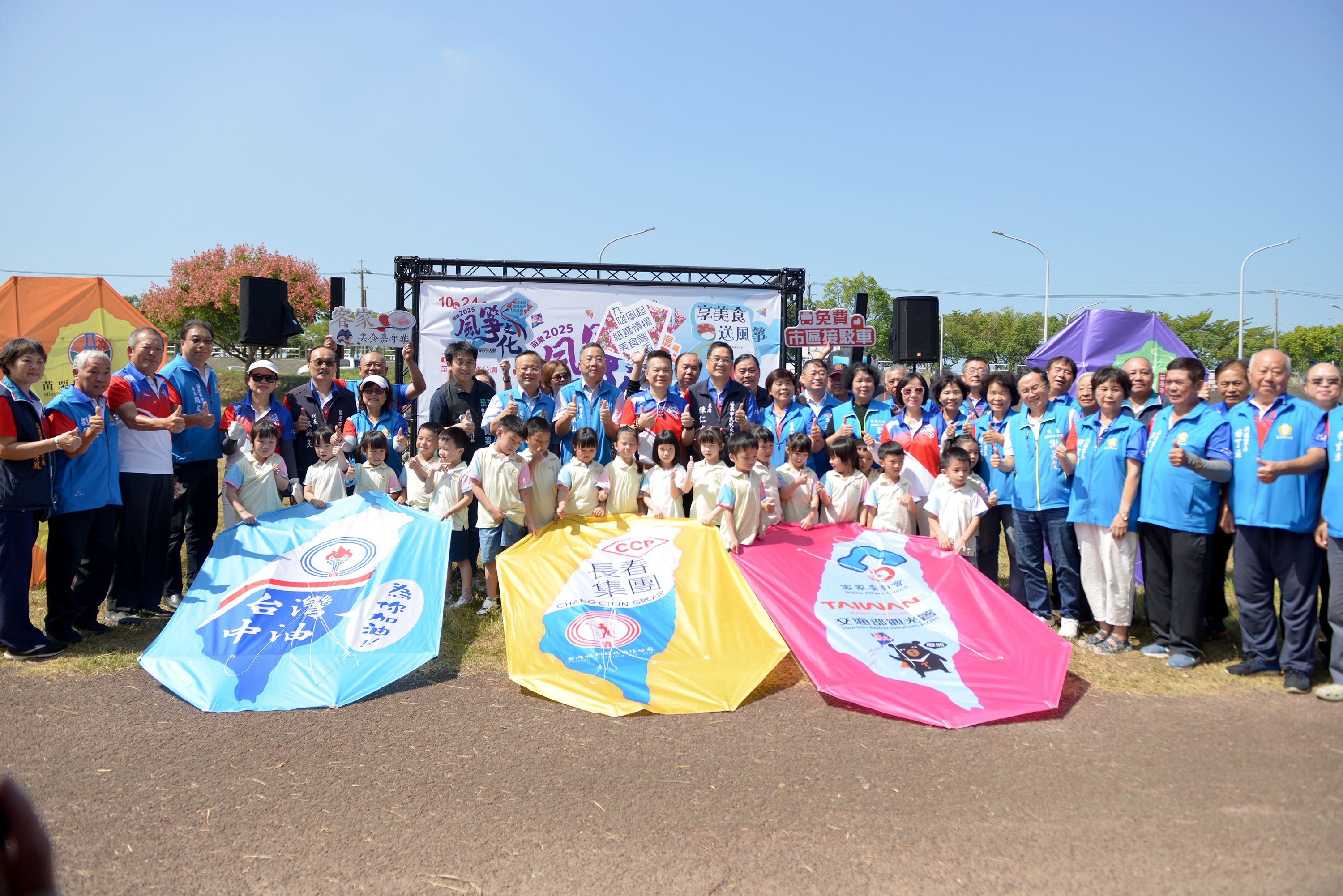 苗栗市年度盛會「苗栗2025風箏文化暨客家美食節系列活動」預定於10月24日至26日舉辦,主辦單位苗栗市公所10月14日上午在主會場經國路河濱公園模型飛機場舉行宣傳記者會,放飛「TEAM TAIWAN」橫幅風箏、Q版紅粄風箏、國旗風箏等各式風箏,苗栗市長余文忠表示,恰逢光復節連續假日,歡迎全國遊客踴躍參加,體驗客庄風情和客家美食。
