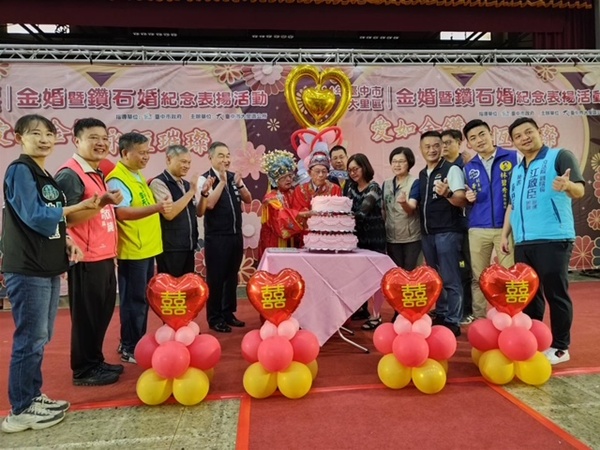活動由副市長黃國榮及大里區鄭正忠區長代表臺中市政府盧秀燕市長特別恭賀、祝福在場攜手共度50年、60年歲月恩愛的阿公阿嬤們。公所團隊特別致贈阿公阿嬤們客製化、獨一無二夫妻甜蜜合照的紀念獎牌、精美禮品及精緻伴手禮盒,會場鋪設紅地毯、氣球繽紛裝飾、提供茶點享用、自由拍照專區,用心佈置喜氣洋洋,也特聘請專業攝影師為接受表揚伉儷及家屬留下永恆的紀念照片及溫馨回憶。