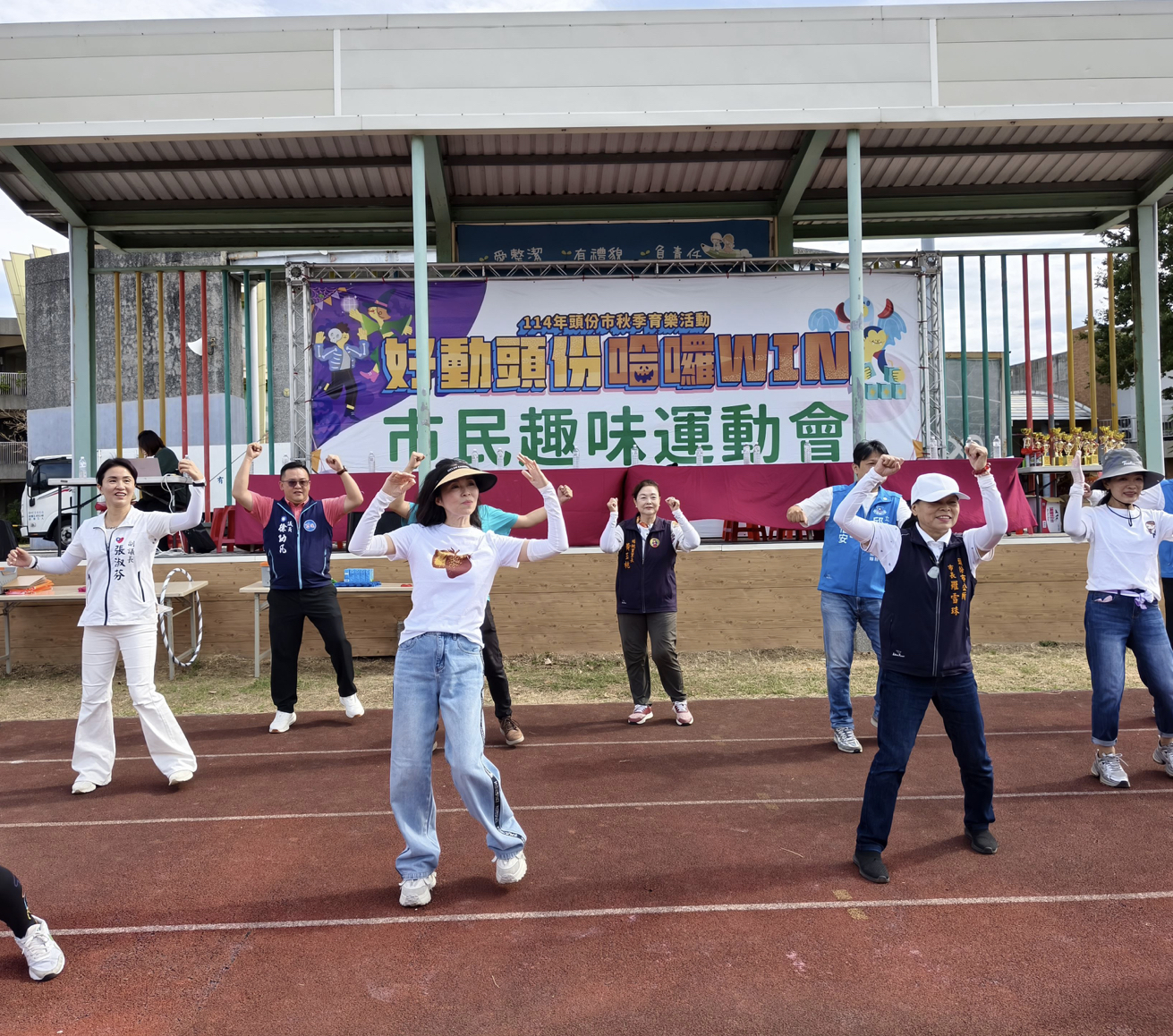 頭份市秋季育樂活動暨市民趣味運動會今(19)日在頭份國中熱鬧登場,縣長夫人陳美琦與頭份市長羅雪珠、副議長張淑芬、議員徐功凡、陳光軒、主席溫宜靜、陳永賢夫人、蕭詠萱助理、溫俊勇秘書及市民代表等一起參加開幕式並與民同樂。