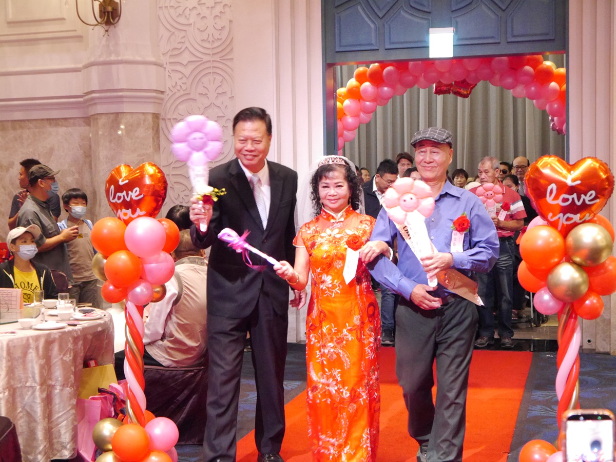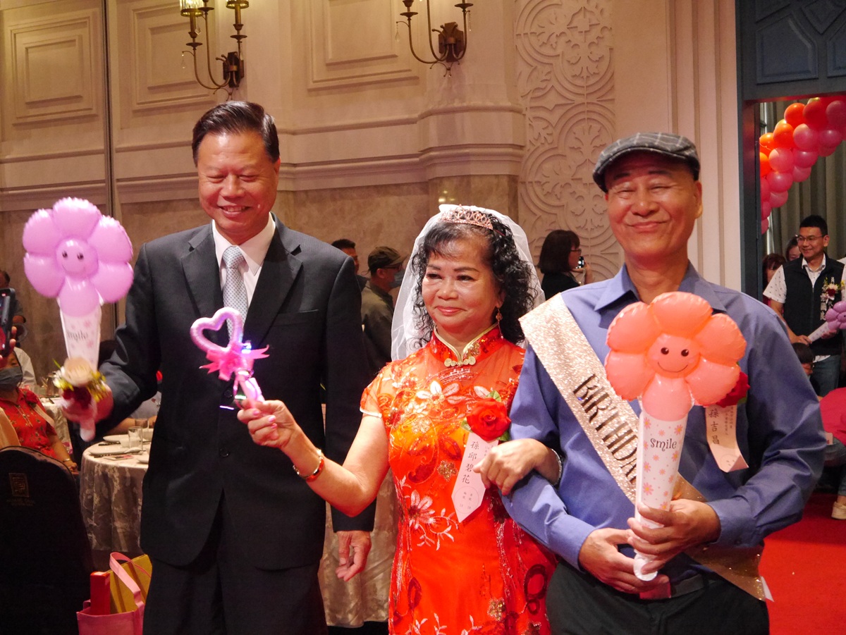代理市長賴致富致詞時表示,今年共有白金婚(70年)6對、鑽石婚(60年)78對、金婚(50年)342對,令人敬佩與感動。他說:「所謂『執子之手,與子偕老』,在人生的長河中,能與伴侶相知相惜五十年、六十年、甚至七十年,實屬難能可貴。」各位長輩不僅是家庭的楷模,更是社會的典範,以「愛與包容」守護家庭,以「智慧與毅力」教養子女,讓家庭溫馨長存、感情歷久彌新。