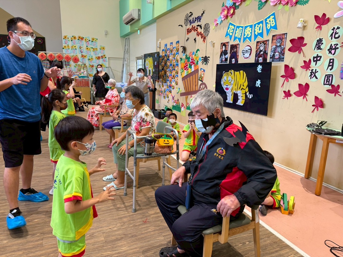 萬聖節不只是孩子的節日!花壇秀和苑日照中心今(27)日舉辦《鬼滅親子祭:無限年齡城》,邀請鄰近貝威幼兒園小朋友共襄盛舉,讓長輩與孩子在音樂與笑聲中共度熱鬧又溫馨的跨世代萬聖節。