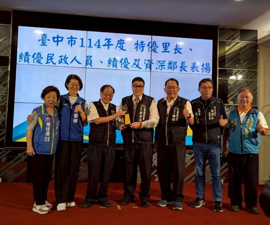 此外,也要特別感謝並表揚榮獲114年度「特優」聯合里環保志工小隊及獲評「優等」泰安、公館及墩北等三里環保志工小隊,還有榮獲「績優榮譽」環保志工墩南里劉清坤志工,長期協助道路清掃、空地維護、巷弄整理、綠美化認養及資源回收等工作,有大家平時的維護里內環境清潔,守護社區環境清潔,大家才能有此清淨家園的宜居城市。