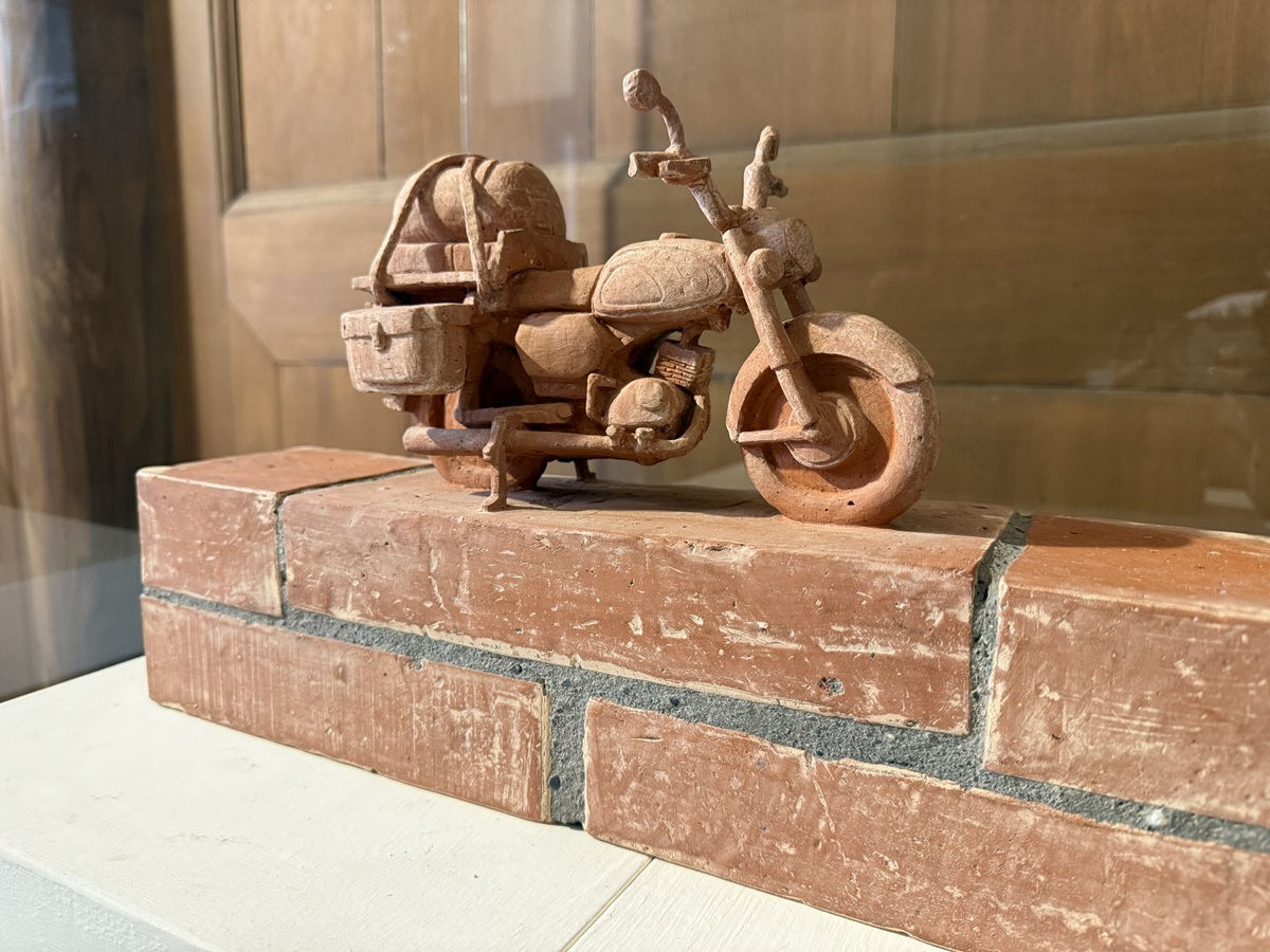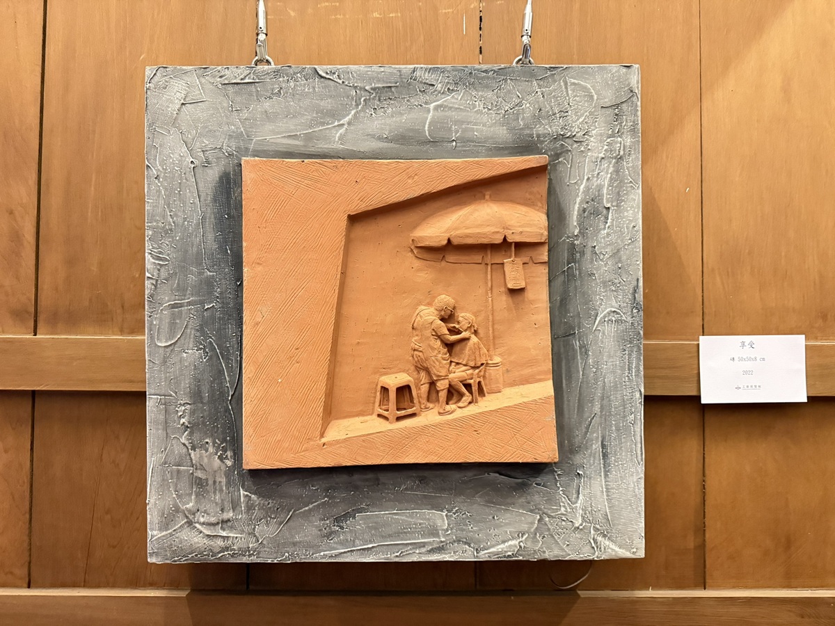 本次展出作品的創作題材均來自林老師的成長時期,從農村田園到童年遊戲與街坊互動,作品透過「窯前雕」技法,先於磚坯上雕刻後在入窯燒製,以樸實的造型語言捕捉常民生命的韌性與溫度,紅磚的溫潤色澤、細緻紋理與窯火痕跡,交織出充滿歷史厚度的畫面,描繪那段社會轉型、經濟起飛的年代,讓觀眾在欣賞作品之餘,也能感受紅磚背後所承載的文化底蘊與生命故事。