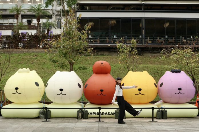新北市政府觀光旅遊局今年特別邀請來自日本的超人氣插畫 IP 「水豚君(KAPIBARASAN)」來臺,打造獨一無二的地景裝置。本次新店碧潭展覽不僅是水豚君IP首度在臺灣以高達12公尺的水上大型裝置登場,更是在臺灣第一次與政府單位進行官方大型合作!新北市觀光旅遊局楊宗珉局長表示,本次合作是經過正式且嚴謹的 IP 授權程序,將國際級的療癒 IP 魅力,與新北市的自然地景完美結合,為市民朋友帶來最高規格的旅遊體驗。另外,觀旅局更推薦,市民可安排一趟新北療癒之旅,白天可以先到新北市瑞芳深澳漁港,找尋原本知名景點原地變身成神似水豚的形狀,成為瑞芳的超萌打卡景點!感受自然地質景觀的療癒;再回到新店碧潭,與12米水豚君裝置相見,完成一趟從天然到知名水豚君結合的療癒之旅。