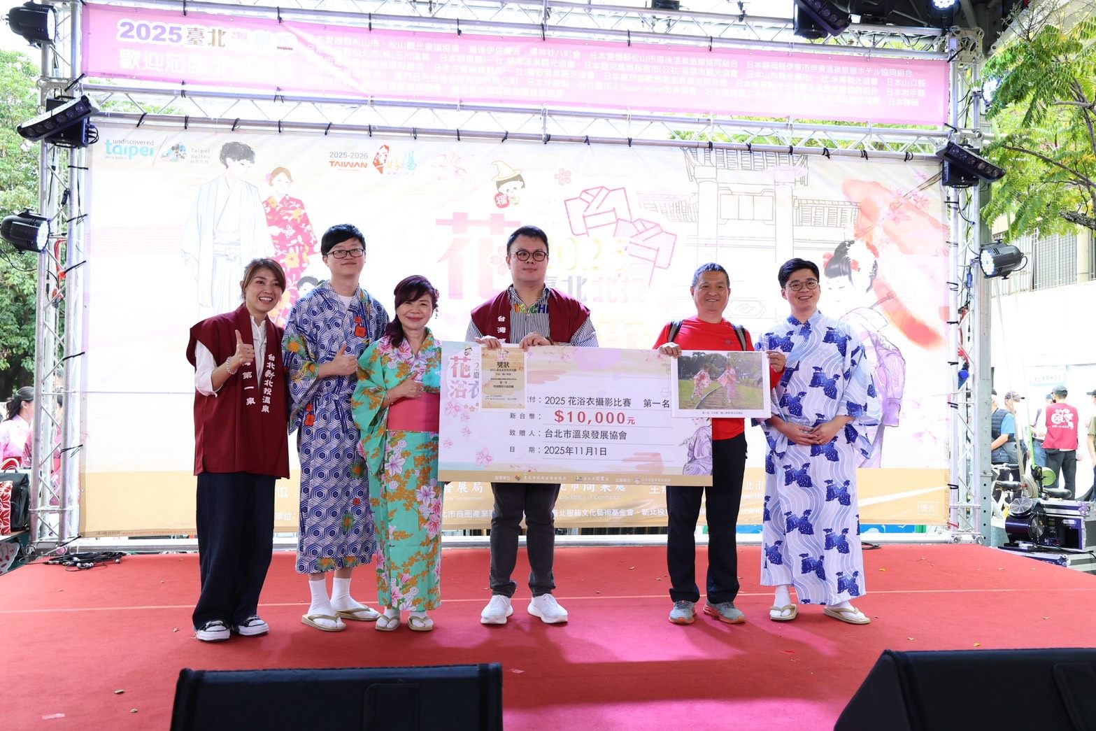 台北市溫泉發展協會理事長林致宇表示,「北投花浴衣節」自舉辦以來已邁入第12年,今年「花浴衣嘉年華」於9月率先展開「人氣花色浴衣票選」,今(1)日特別舉行「花浴衣時尚走秀」,同時以男性、女性及兒童版展示人氣前3名花浴衣款式,讓傳統浴衣以全新姿態重現北投風華。活動同時舉辦「花浴衣攝影比賽」頒獎典禮,由攝影愛好者以鏡頭捕捉北投最具代表性的10處經典景點,透過影像作品傳達對北投自然景觀與人文底蘊的深刻體悟,進一步推廣新北投溫泉商圈的文化美學與觀光風貌。此外,今年特別迎接來自日本山形縣的溫泉姐妹會代表團,於現場帶來充滿日本風情的「花笠舞踊」表演,熱鬧氣氛讓新北投化身為洋溢異國風采的日式街區,為活動增添濃厚的文化交流意涵與節慶亮點。