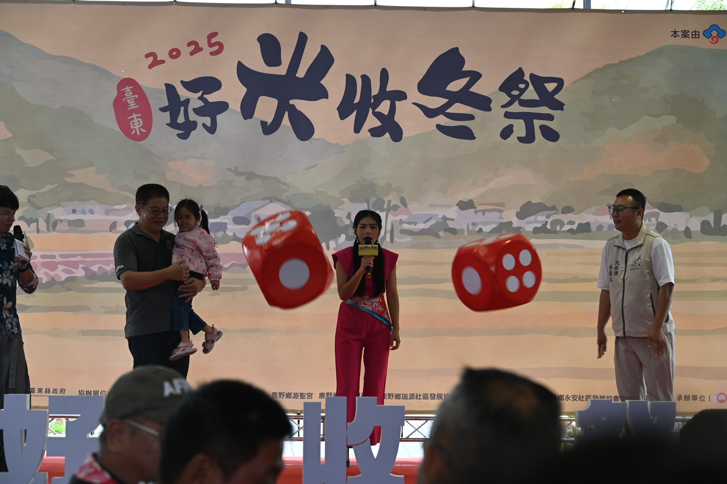 活動在「收冬完福祭典」揭開序幕,主祭者率領鄉親代表共同祭祀天地與伯公,祈求風調雨順、國泰民安。莊嚴而隆重的儀式,展現客家族群敬天惜福精神,象徵一年農事的順利圓滿完成。延續傳統信仰「擲筊祈福賽」隨後登場,民眾在笑聲與掌聲中參與挑戰,為自己與家人祈福添喜氣;「好米文創市集」吸引遊客流連,從農特產品到創意手作,展現臺東農業與文創交織的多元樣貌,讓更多人看見地方特色的深厚底蘊。