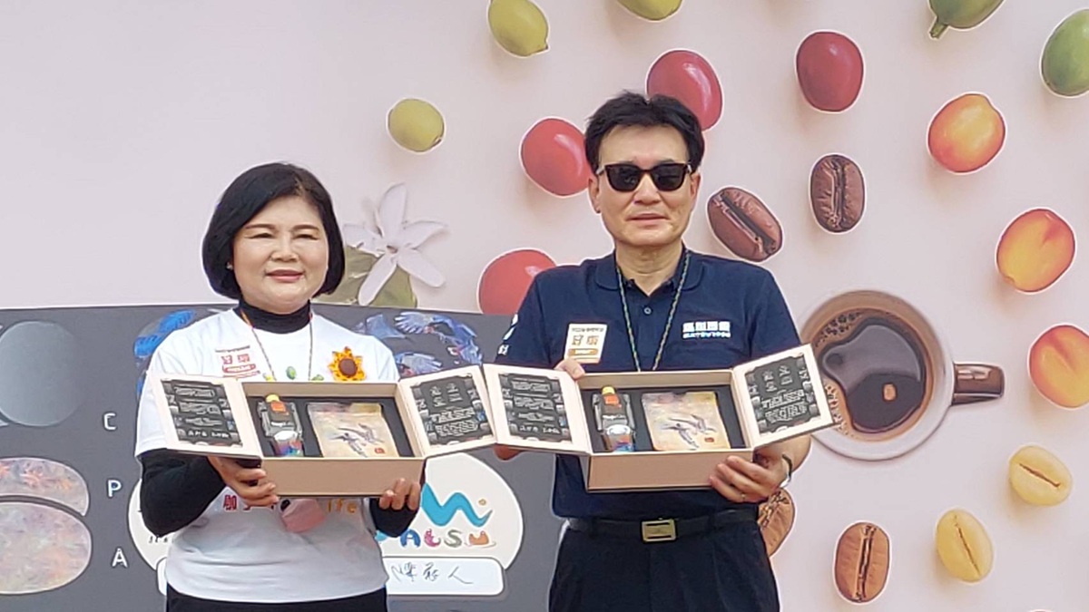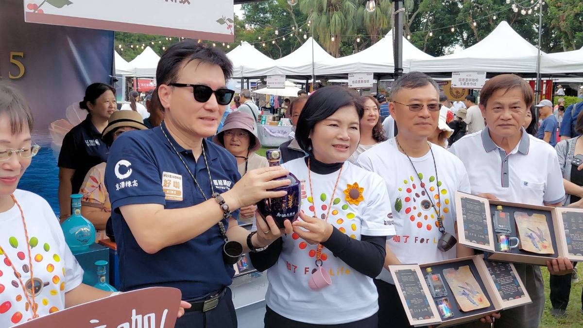 張麗善指出,今年台灣咖啡節首度跨縣合作,融合雙島文化特色,由連江縣馬祖酒廠與古坑農會攜手推出「日光微醺」禮盒,結合雲林精品咖啡與馬祖特色美酒,展現濃厚島嶼風情。禮盒包裝以「雙島飛翔」為設計主軸,象徵台灣藍鵲與黑嘴端鳳頭燕鷗兩地相連的文化交流與友誼往返。今日開幕式中,雲林縣長張麗善與連江縣副縣長陳冠人共同於禮盒上簽名,象徵兩縣正式啟動合作,共同推動咖啡與地方文化的嶄新篇章。