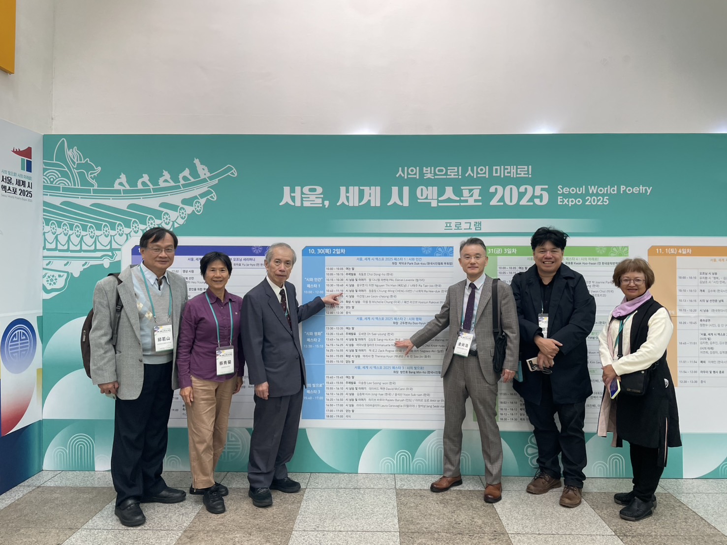 《首爾世界詩博覽會2025》於10月29日至11月1日在韓國首爾舉行,由韓國詩人協會主辦,邀集全球詩人、文學家與藝術家參與詩作朗誦、論壇及文化交流活動。本屆以「詩與和平」為主題,期望透過詩的語言促進跨國理解與友誼。金尚浩院長受邀出席,與多國詩人進行詩作交流與座談,推動台灣與國際詩壇的文化連結。