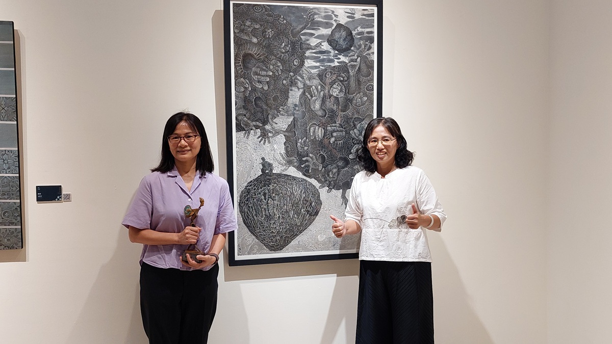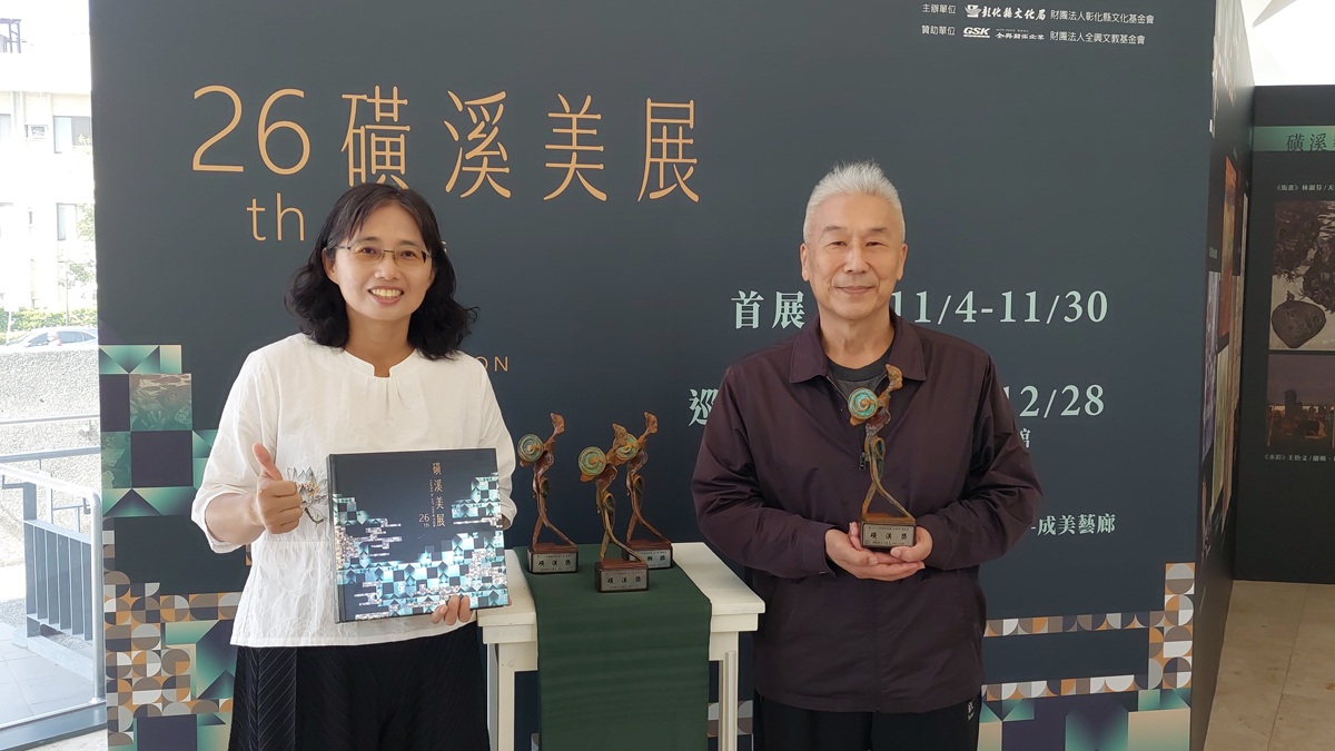 今年的獎座設計同樣匠心獨具,特別邀請長榮大學美術系教授林慶祥設計與製作。林教授為彰化埔鹽鄉出身,同時亦為「本縣美術家接力展」第77棒參展藝術家。獎座以「多重透視」為創作概念,象徵創作者視野的延伸與藝術語言的突破,展現不斷探索、創新與超越的精神,為本屆展覽注入深遠的文化意涵與時代象徵。