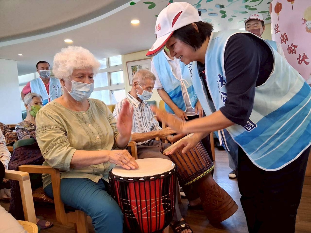 樂團這次也特別安排非洲鼓表演,為現場注入活力與節奏感,鼓聲震撼人心,長輩們拍手、點頭、跟著節奏擺動,團員也帶著長輩一起拍打非洲鼓,樂音共鳴、笑聲不斷。壓軸曲〈歌聲滿行囊〉由團員與長輩們共同合唱,歌聲此起彼落、溫情洋溢。歡樂的時光總是過得特別快,音樂一結束,大家依依不捨、頻頻道謝,現場充滿溫馨與感動,也為活動畫下溫暖的句點。