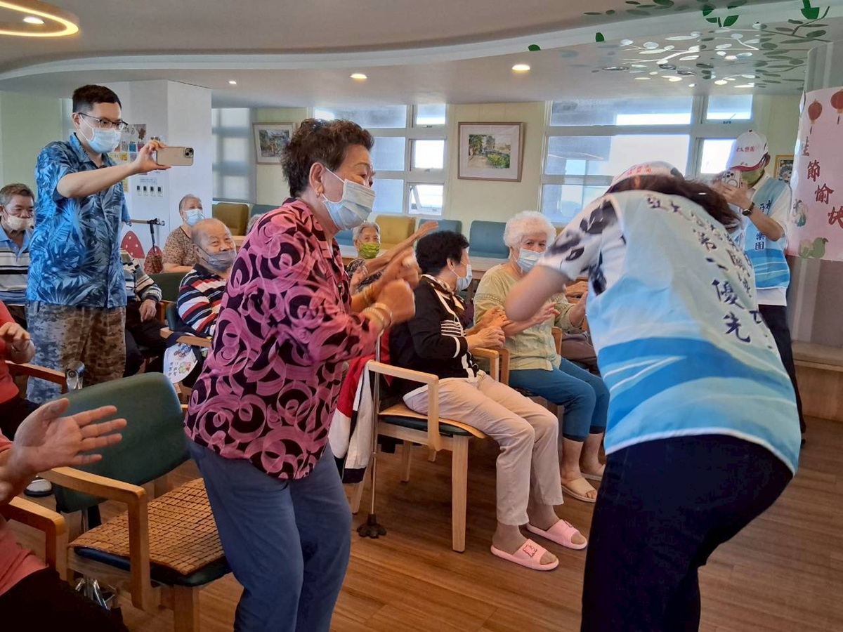 柳月琴與二胡合奏〈純情青春夢〉,樂聲婉轉悠揚,勾起長輩青春的記憶,不少人輕聲哼唱,讓人彷彿回到青春時光。隨後的帶動唱〈天公疼憨人〉與〈可愛的玫瑰花〉更是將氣氛推向高潮,不少長輩站起來跟著一起搖擺。