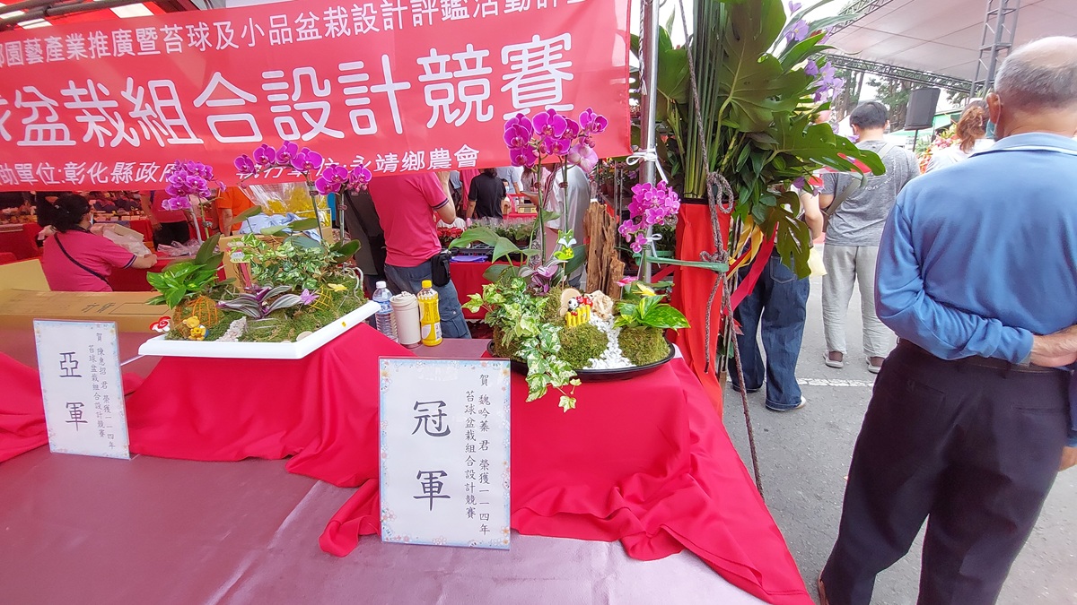 農業處表示,今年永靖鄉特別舉辦苔球及小品盆栽設計競賽,共有60組參賽,每一位參賽者結合植物造型與設計美感進行園藝創作。苔球以苔蘚包覆根系、搭配植栽素材,創造出自然又療癒的「綠色小宇宙」;小品盆栽則以細緻構圖與比例美學,將植物之美濃縮於小巧盆景中,展現園藝與藝術的完美融合。縣府將持續與各鄉鎮市農會攜手合作,推廣地方農特產品,打造地方特色新亮點。