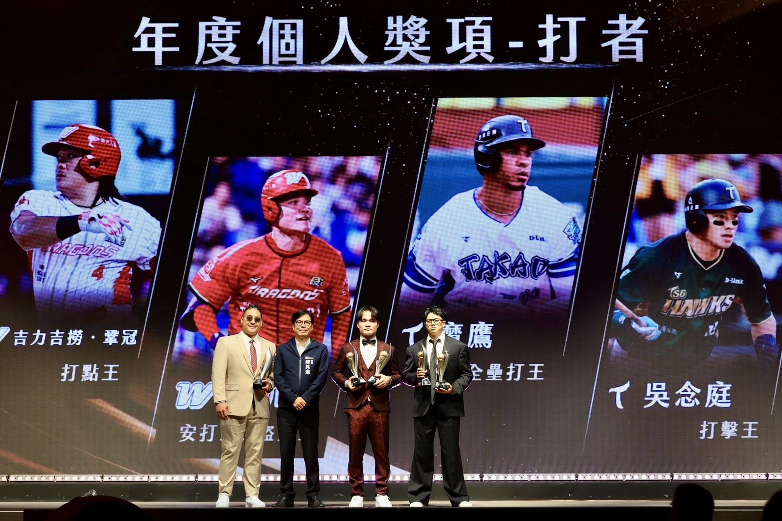 圖說:中華職棒頒獎典禮睽違30年,再次移師高雄於萬豪酒店盛大舉辦,市長陳其邁出席頒發打者年度個人獎項,並向所有球員、球迷致敬,感謝聯盟與各球團努力拚戰,點燃台灣棒球熱潮。(圖/高雄市政府提供)