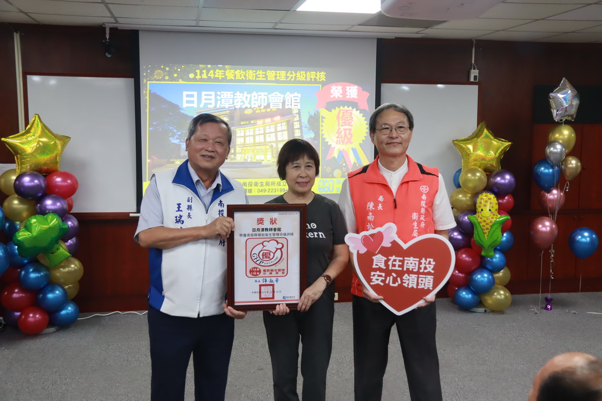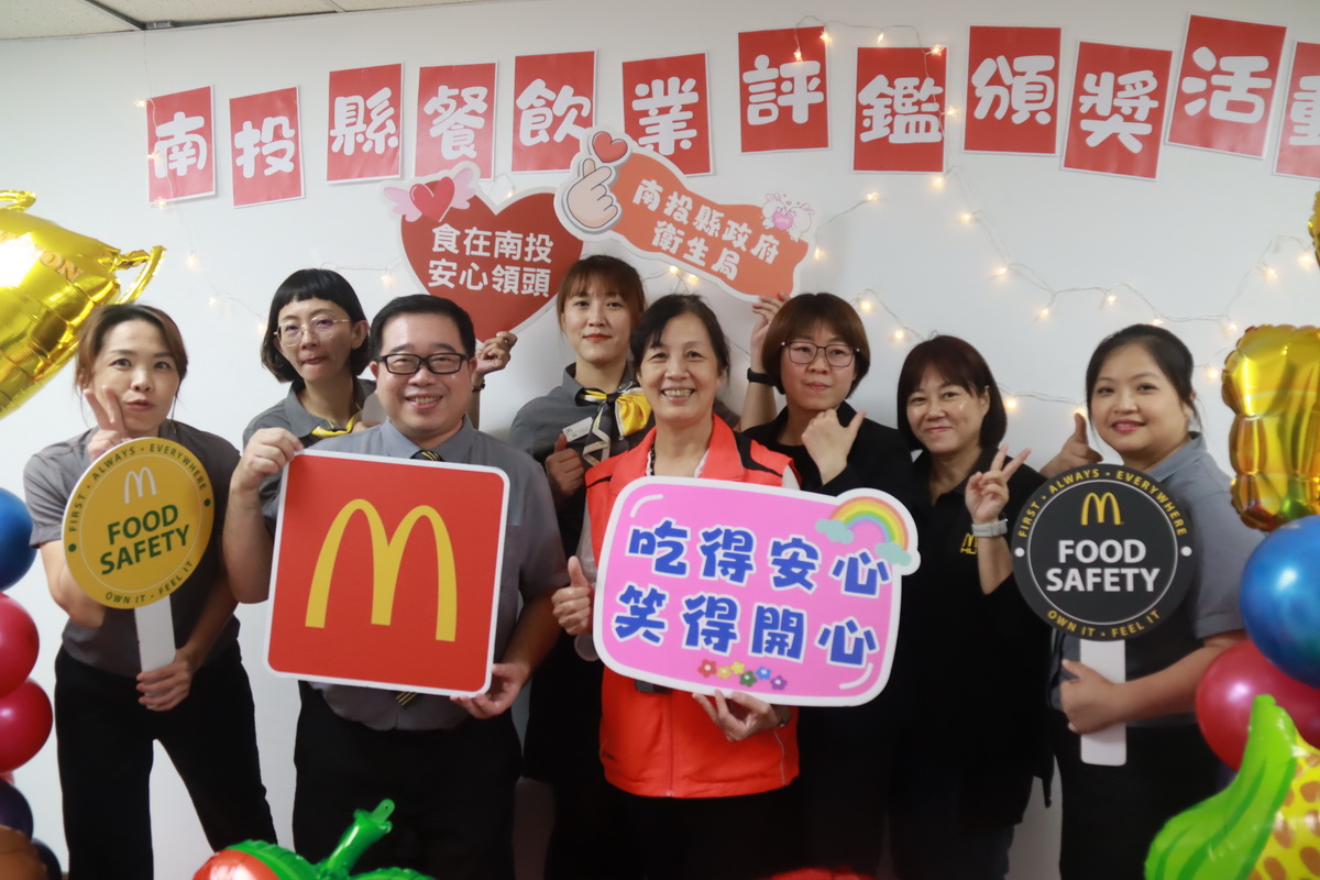 大眾重視食安問題,要求「吃的安全,食在安心」,南投縣衛生局針對餐飲業舉辦衛生管理的分級評核,吸引全縣60家相關業者參與競逐,僅有一家未通過評核,其餘有44家列入優質,15家獲得良級,副縣長王瑞德代表許縣長於10日在衛生局3樓逐一頒獎狀恭喜,肯定業者為南投觀光大縣盡心盡力,呼籲縣內業者持續為食安努力,提供遊客來觀光首都更好的美食體驗。其中麥當勞是今年大贏家,計有5家分店均入選,日月潭區更有多家業者都名列優級。