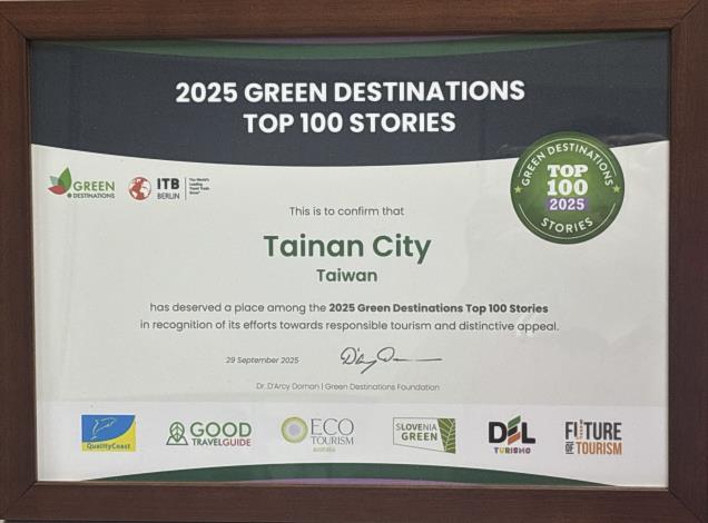 全球百大綠色旅遊目的地故事競賽係由荷蘭非營利組織「綠色目的地基金會」(Green Destinations Foundation)從2014年起辦理,並於每年年會中頒布入選全球百大目的地的故事獎項,透過各目的地的永續故事分享,發表各國在永續發展目標的實踐。觀光旅遊局林國華局長表示,今年年會於9月29日在法國奧克西塔尼(Occitanie)舉辦,台南市以「時光留痕,古城新生」入選全球百大目的地故事獎,展現市府、中央與旅宿相關協會邁向永續旅遊實踐的作為。