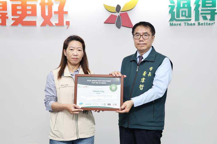 台南老屋民宿的永續發展今(114)年以「時光留痕,古城新生」獲選「2025全球百大目的地故事獎」,觀光旅遊局於今日(11/11)的市政會議獻獎。這是一個國際級的競賽,台南市首次參加全球百大目的地故事競賽,與38個國家、180多個旅遊目的地一同角逐獎項,並入選全球百大目的地故事之一,是台灣唯二獲此殊榮的城市。黃偉哲市長今(11/11)日於市政會議肯定市府團隊與旅宿相關業者的努力,讓臺南老屋民宿打入國際永續旅遊市場成為永續旅遊典範,並期許台南市的觀光推廣能持續獲得國際綠色旅遊市場的注目。