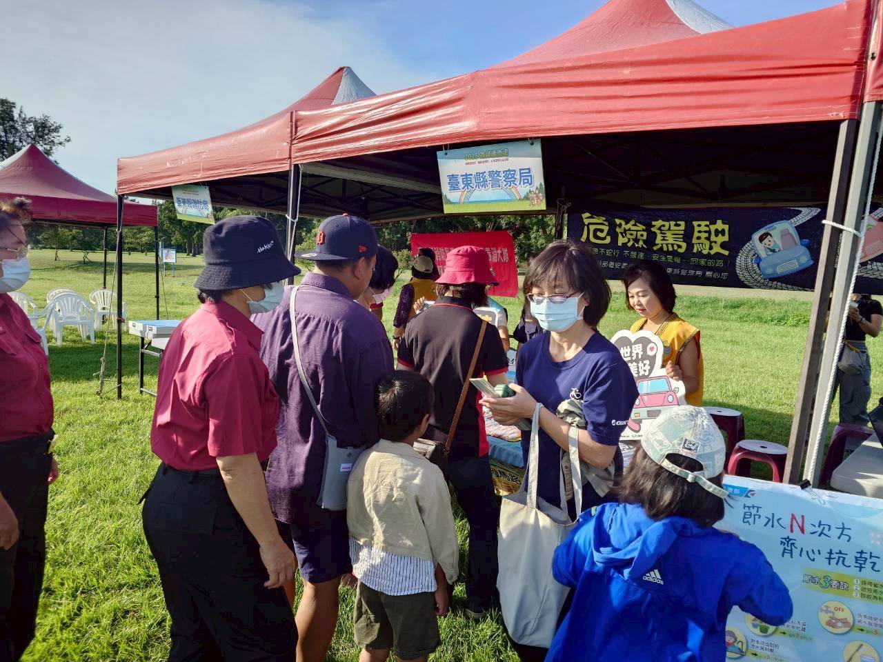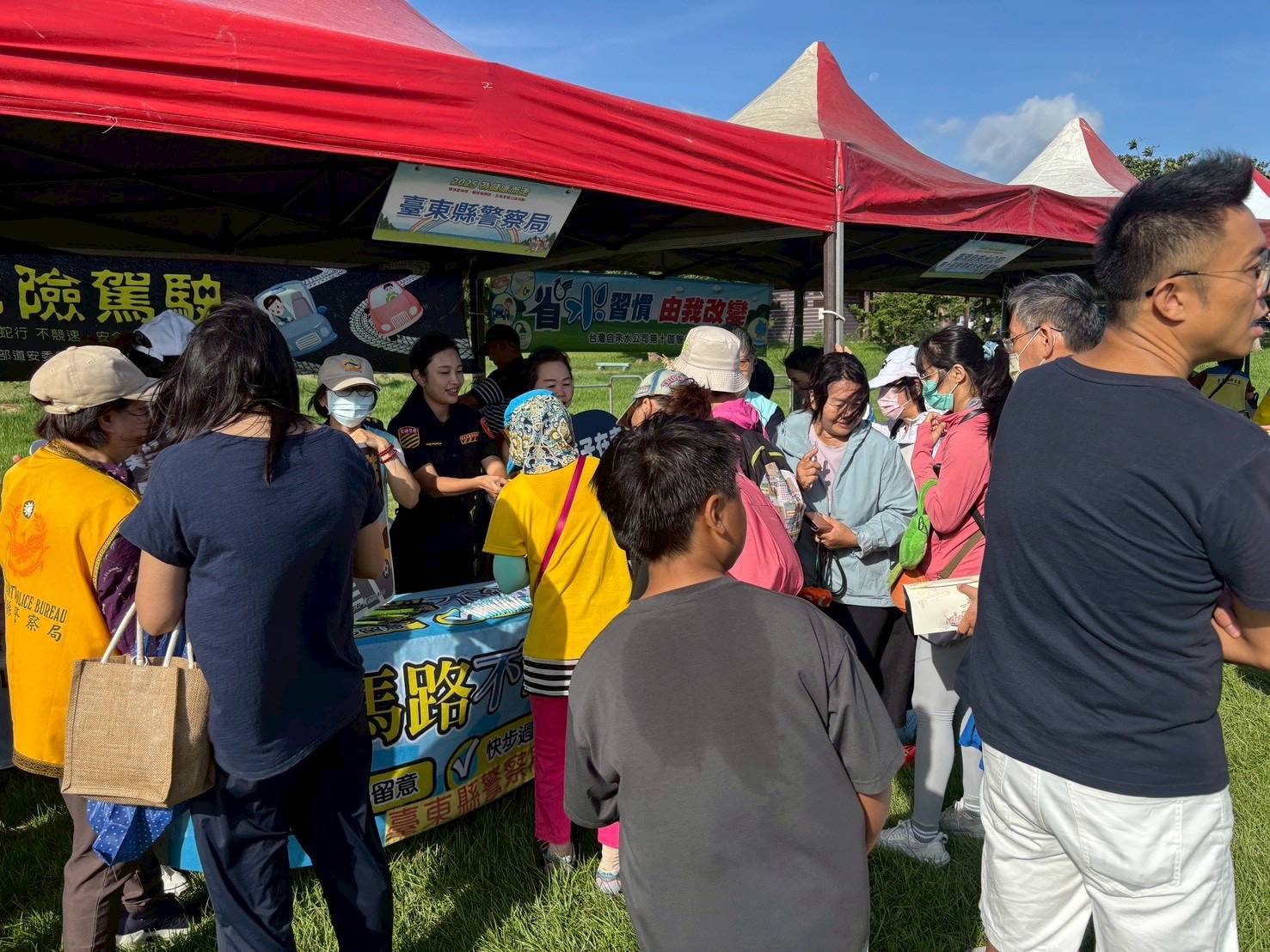 臺東縣警察局交通隊日前於臺東森林公園舉辦健走活動期間,前往現場向民眾進行交通安全宣導,針對高齡駕駛人換照制度、無照駕駛新修法重點,以及無號誌路口停讓規則進行深入說明,吸引眾多民眾駐足聆聽與參與。