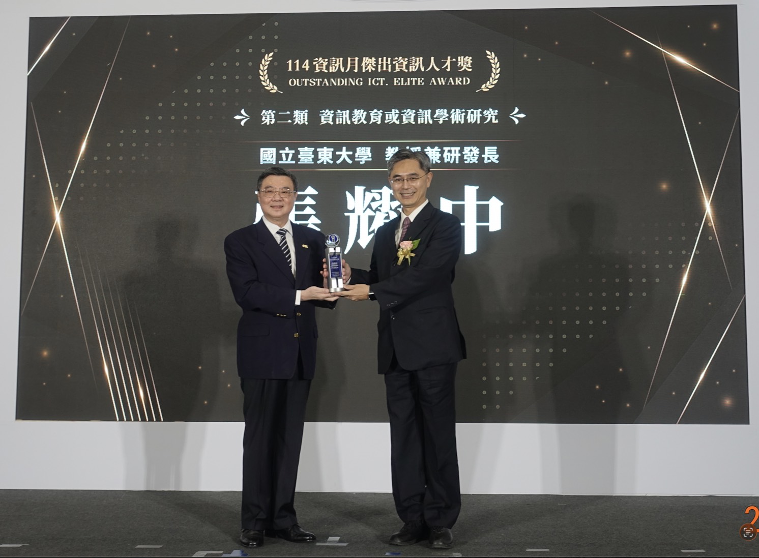 國立臺東大學研發長張耀中教授榮獲2025年資訊月「傑出資訊人才獎」殊榮,並於114年11月13日在台北世貿一館舉行頒獎典禮,接受行政院卓榮泰院長表揚。這項代表我國資通訊產業最高榮譽的獎項,肯定張耀中教授在教育數位推動、人才培育與學術研究等領域的卓越貢獻。