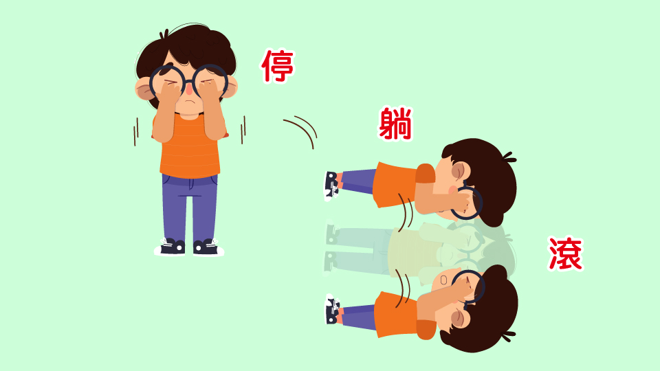 圖說:身上著火的時候記得要停躺滾。(圖/基隆市政府提供)