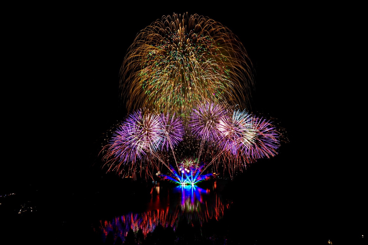 本次煙火以山影天光為主題,融合音樂與光影為概念,配合向山地形與湖面景緻,打造「山、水、聲、光」交織,壓軸以三發16吋高空煙火結尾,呈現自然與藝術共譜的壯麗篇章。