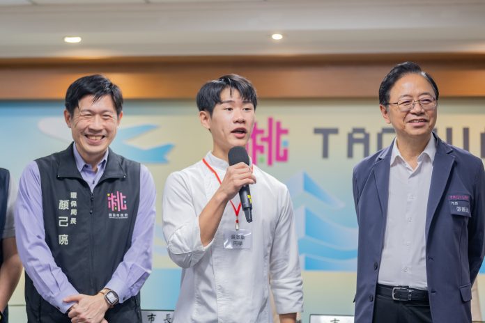 桃園市長張善政今(12)日下午於市政會議中表揚榮獲環境部第3屆首惜廚師全國第2名的吳添豪同學。張市長表示,「首惜」的「惜」意指珍惜食材、減少浪費,環境部以廚藝競賽倡議惜食理念,別具教育意義。此次吳添豪同學從全臺572名參賽者中脫穎而出,不僅展現桃園青年在永續飲食上的創意與實踐,更象徵桃園在環境教育與食物減廢推動上的成果。期勉更多學子效法吳同學精神,讓環保與惜食成為日常生活的一部分。