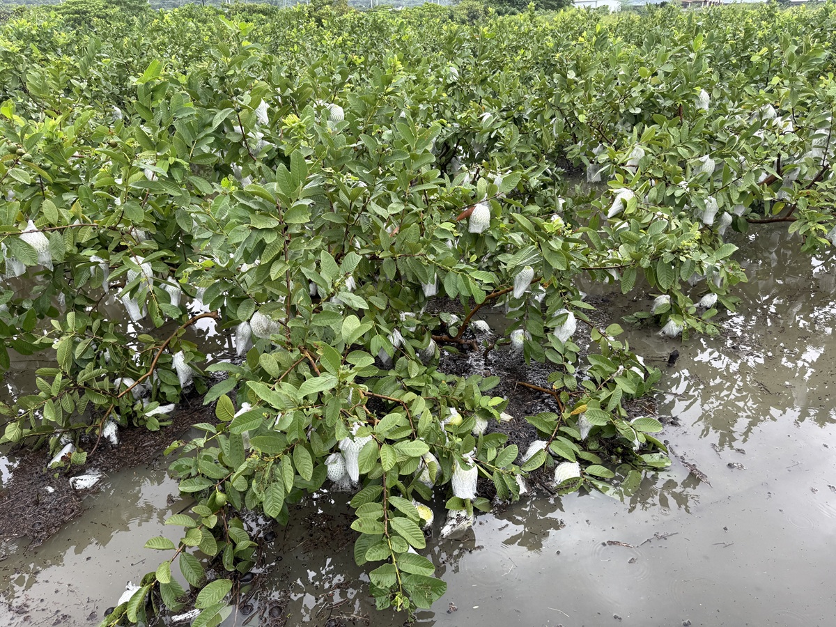 社頭鄉果樹產銷班班長陳建裕說,因受7月丹娜絲颱風、後續強降雨影響,造成芭樂園泡水,芭樂落果、根系受損,花苞也被打下來,他們的損失高達7、8成,最近都沒芭樂可收,芭樂生長期約4個月,大約要到今年12月到農曆年前芭樂產量才會進入盛產期。