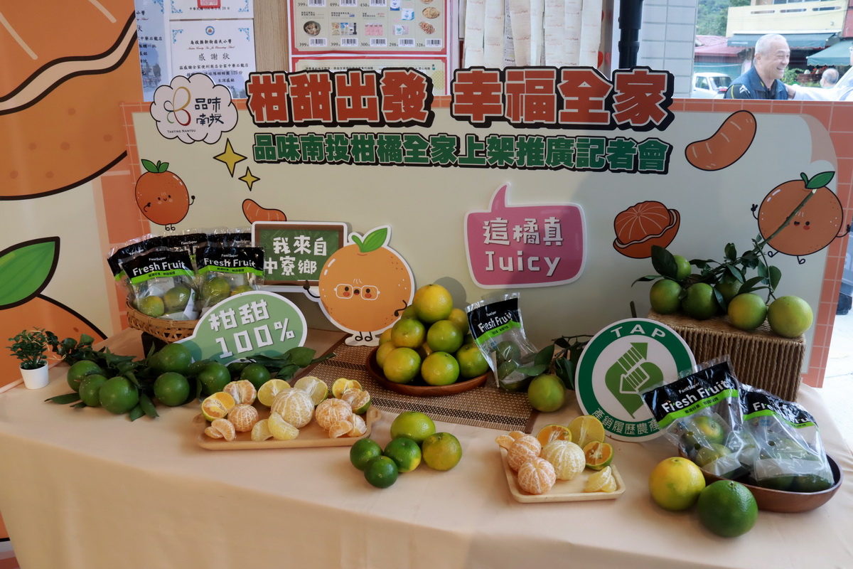 南投縣是農業大縣,中寮鄉的香蕉與柑橘更是絕美農產,南投縣府推出農業品牌「品味南投」,為推廣當季柑橘,攜手全家便利商店與玉美生技股份有限公司,共同推出袋裝柑橘,19日於全家便利商店中寮石龍店舉辦「柑甜出發・幸福全家」上市記者會,縣長許淑華歡喜推薦農友辛勤栽培的水果,歡迎全國大眾來品味南投美好柑橘。