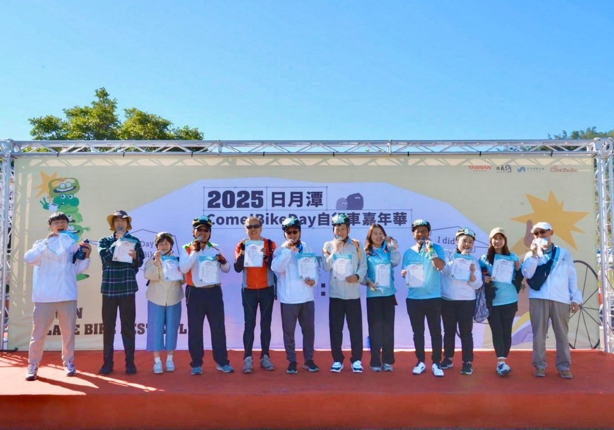 日月潭Come!BikeDay自行車嘉年華於22日在風景如畫的向山遊客中心登場,超過千名國內外單車愛好者與親子家庭齊聚,開幕式邀請日本尾道市市長暨島波海道(SHIMANAMI JAPAN)理事長平谷祐宏、遊日盟族董事長高政能及自行車女神舒舒,與日月潭國家風景區管理處處長柯建興共同揭開活動序幕,展現台日自行車交流的緊密連結。